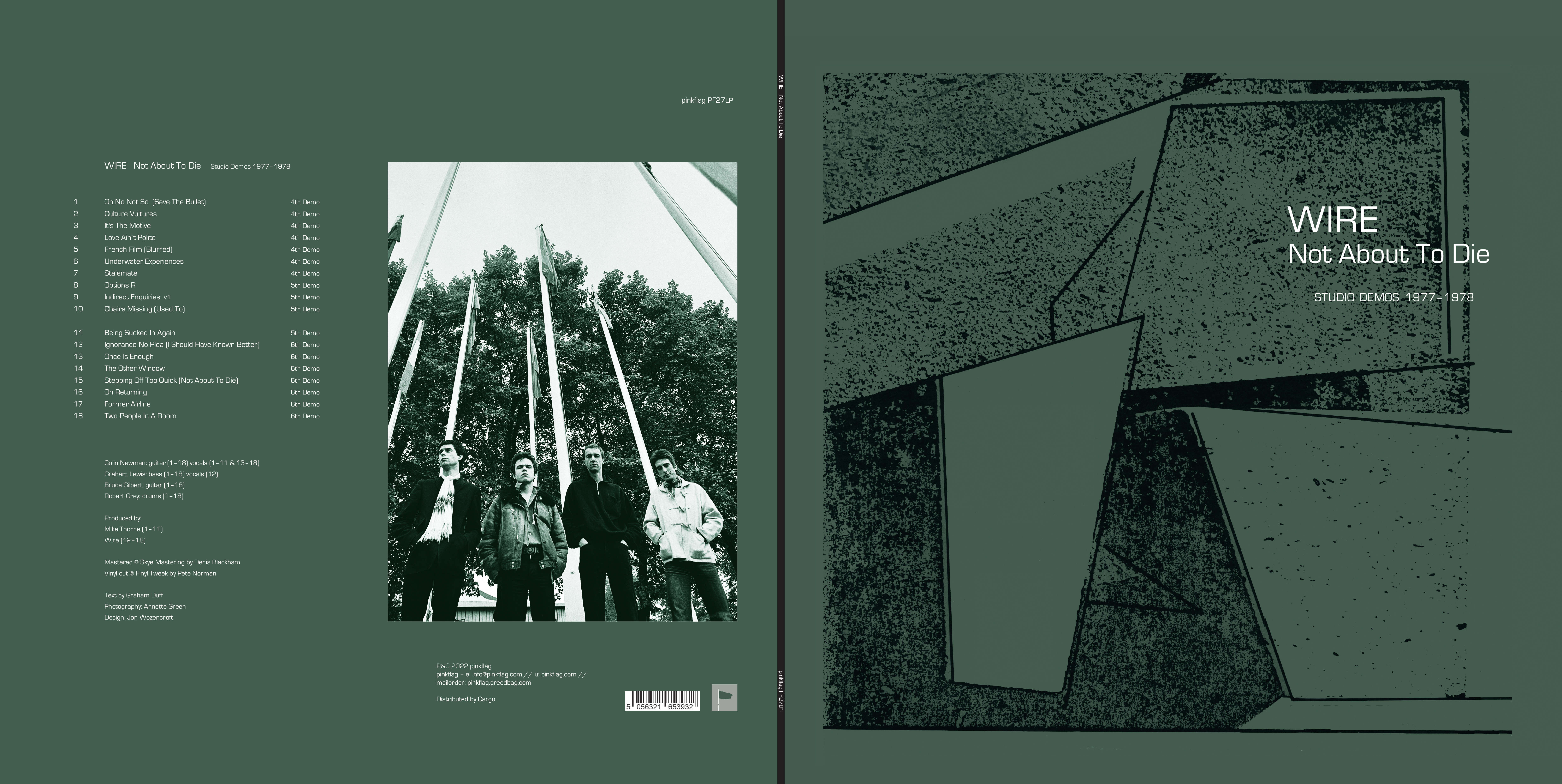 A typically shoddy cash-in, the songs on Not About To Die were taken from a second- or possibly third-generation cassette, with the album housed in a grainy green and red photocopied sleeve. Compared with the high standards of production and design Wire have always been known for, it was something of an insult to band and fans alike.